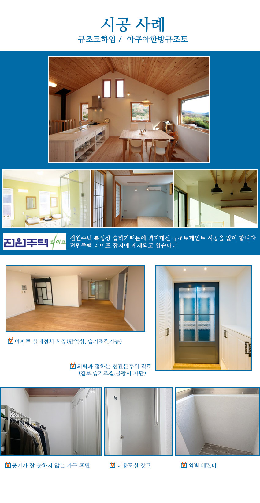 적응소재 - 석고보드, 콘크리트, 콘크리트블럭, 시멘트몰탈미장면, ALC블럭, ALC패널, PC패널등 실내 벽면이나 천장