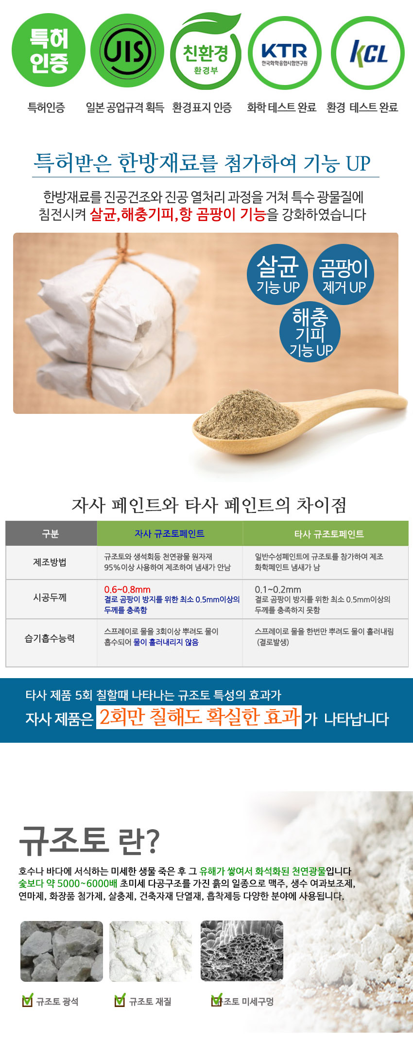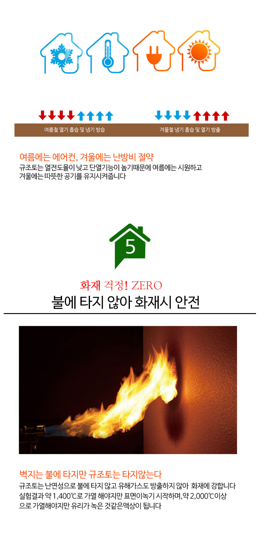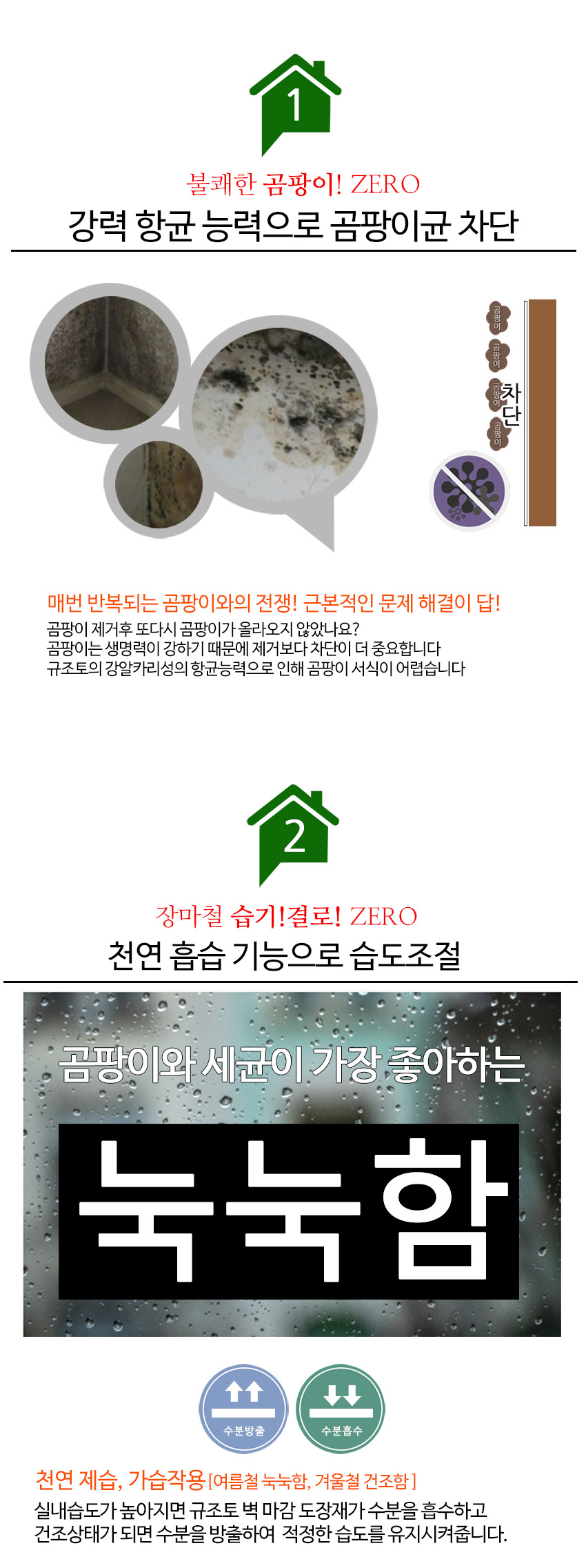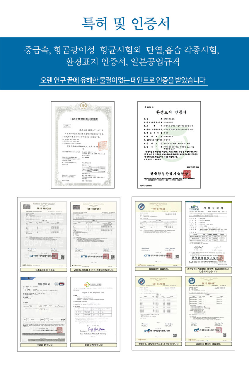 특정품질 - ☑결로,곰팡이 방지 ☑단열성 ☑내화성☑탈취 및 유해물질 흡착 분해기능