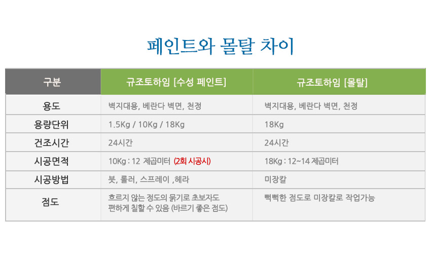 시공면적 - 2회도장시 약18㎡/1통(18Kg)