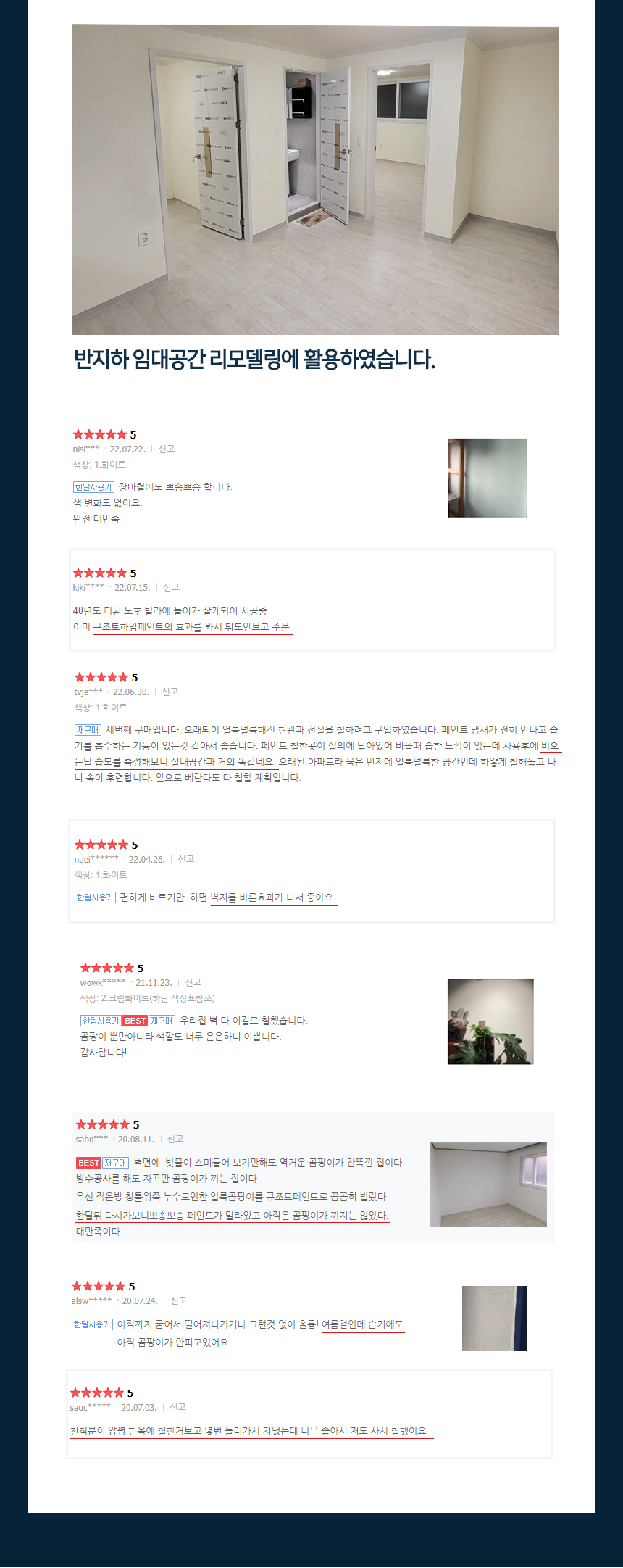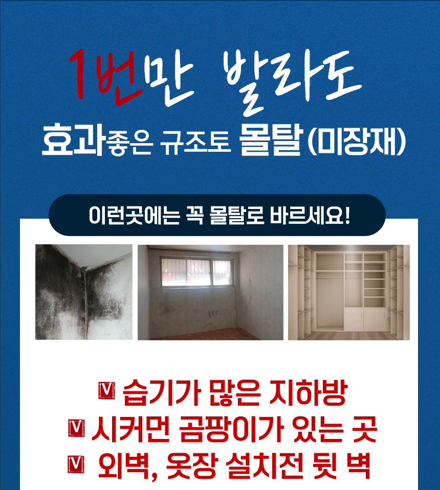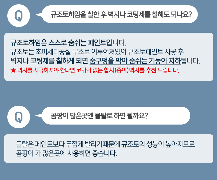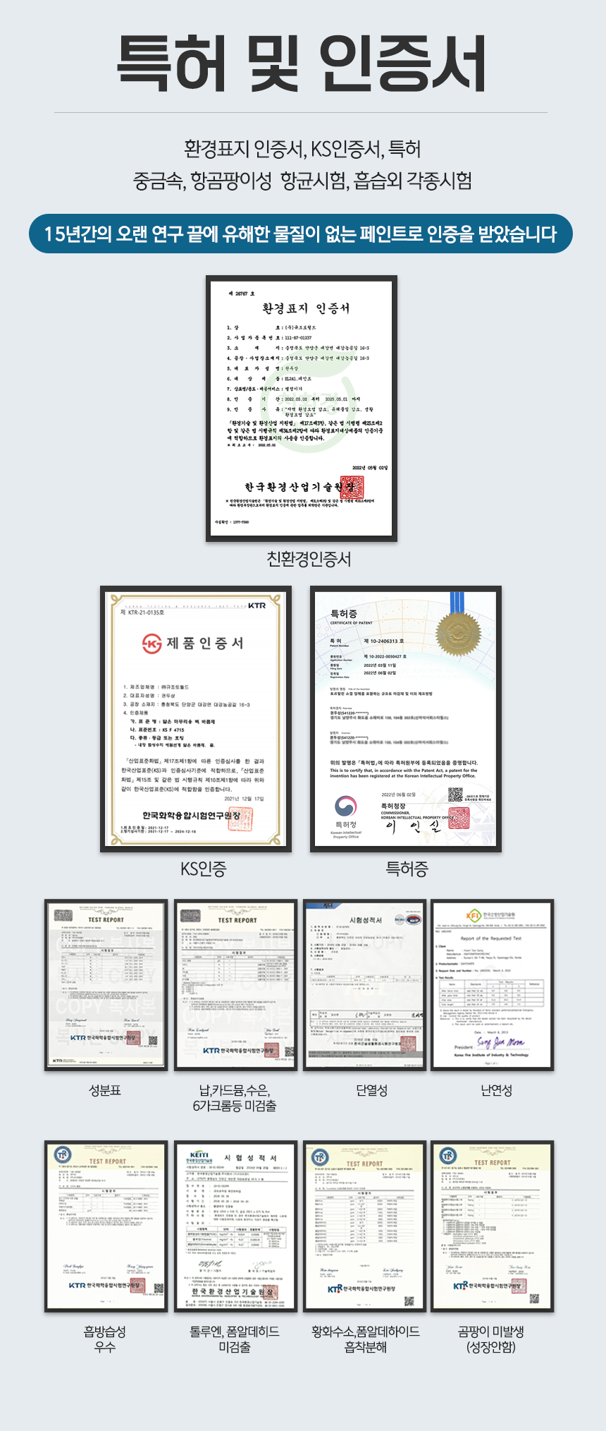 특정품질 - ☑결로,곰팡이 방지 ☑단열성 ☑내화성☑탈취 및 유해물질 흡착 분해기능