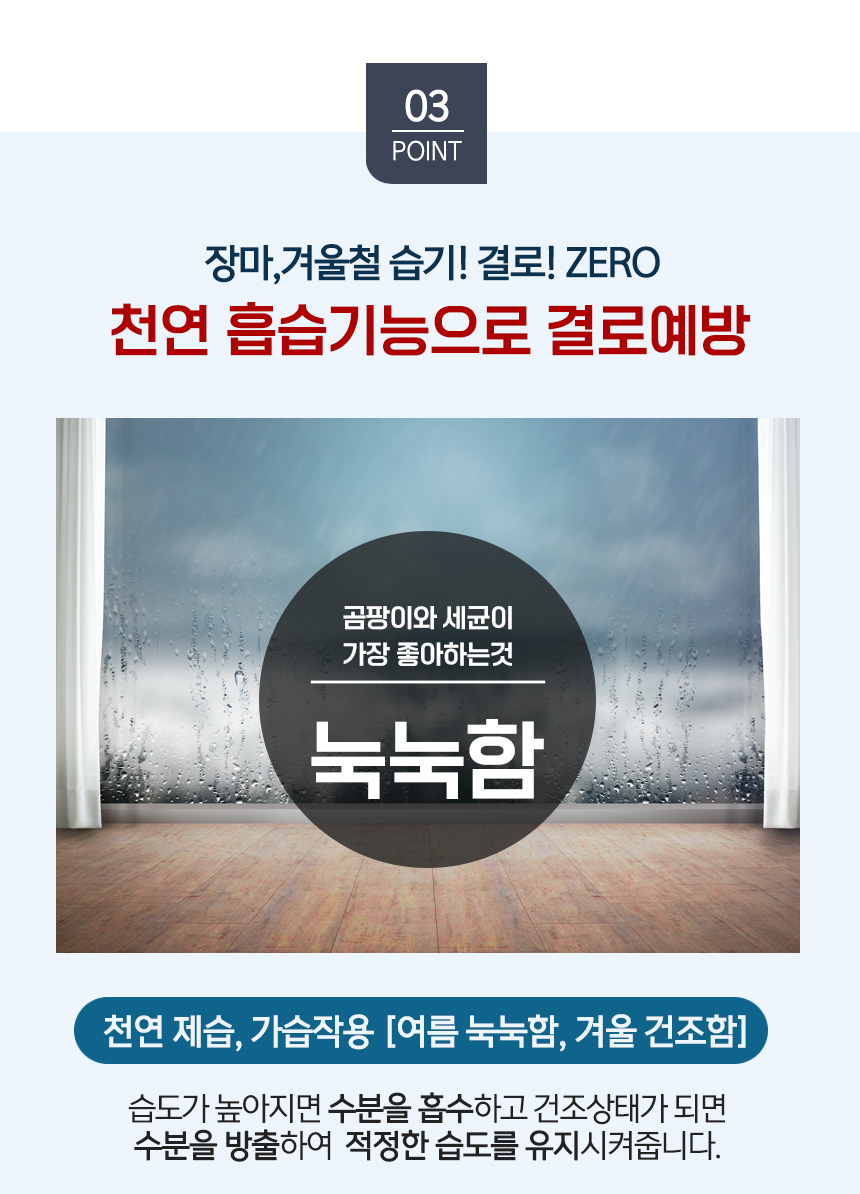 특정품질 - ☑결로,곰팡이 방지 ☑단열성 ☑내화성☑탈취 및 유해물질 흡착 분해기능