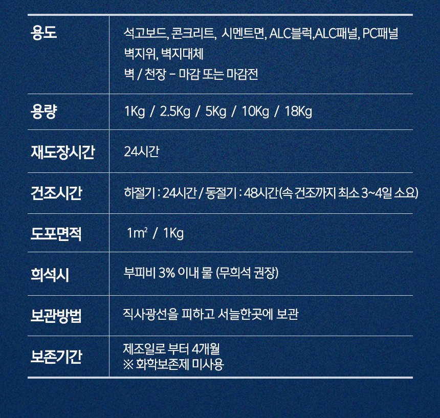 시공면적 - 2회도장시 약1㎡/1통(1.3Kg)